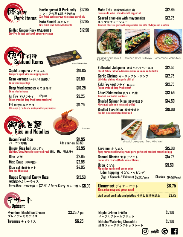 Monday – Friday 5:30 pm – 12:00 am | Saturday 5:00 pm – 12:00 am